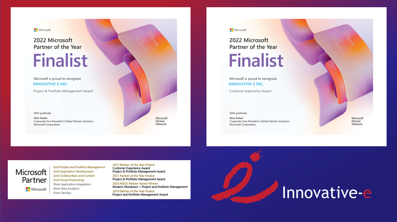 Being named the winner of the MSUS Microsoft Partner Award in 2020 and named as a finalist of the Microsoft 2019, 2021 and 2022 Partner of the Year Awards in PPM reflects Innovative-e's ongoing commitment to leveraging project management and partnering with world-class solution providers to improve lives. In 2022, Innovative-e was also named a finalist in the area of Customer Experience, demonstrating the company's dedication to its customers.